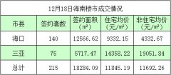 据海南省住宅与房地产信息网网上签约系统显示,12月18日海南签约商品房215套,签约面积18284.09㎡,签约住宅均价11845.19元/㎡。(注:以上数据为当日海口,三亚网签备案统计结果,不...